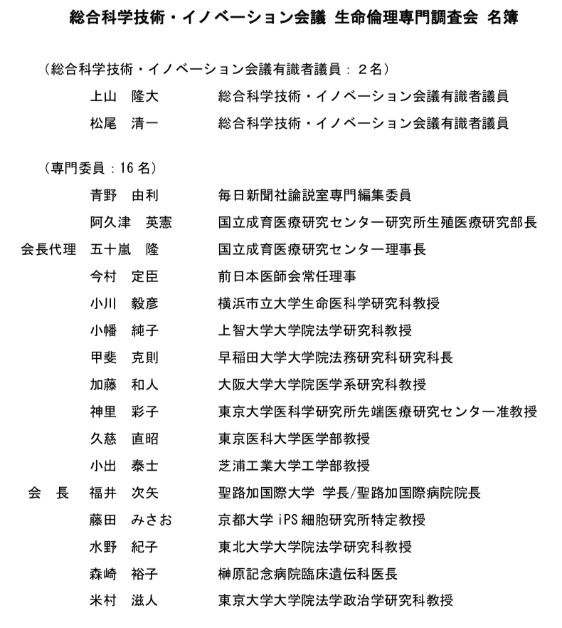 内閣府ページ 「生命倫理専門調査会」