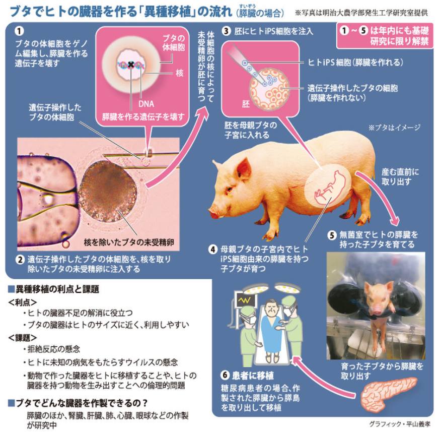 共同通信 26日 政府、動物で人の臓器作製解禁へ 来春までに指針改正
