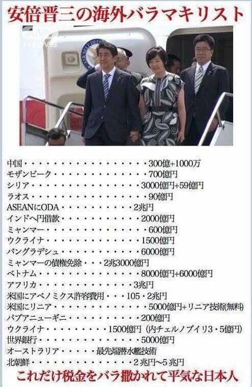 我が首相はまた海外に大盤振る舞い。(´-`;)トホホ