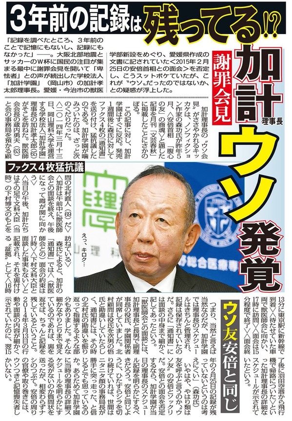 加計氏の「記憶にも記録にもない」がウソである可能性が浮上!