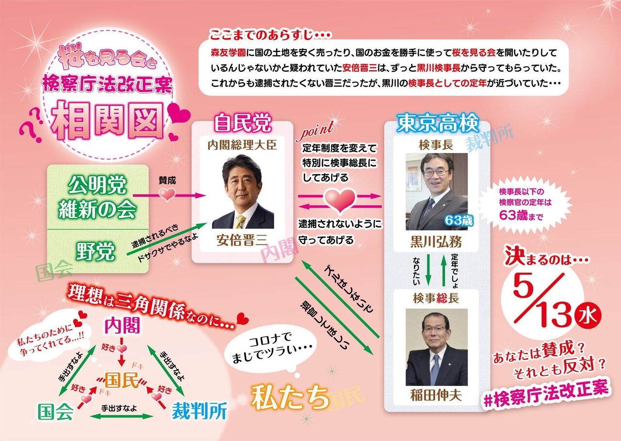 #検察庁法改正案に抗議します 安倍政権が、「安倍政権の守護神」と呼ばれる黒川検事長の定年をあわてて延長しようとしてるのは、弁護士団体が公選法違反で安倍総理を刑事告発しようとしてるからですよね? もし違うなら、今このコロナ危機に急いで延長しなければならない理由って何ですか?